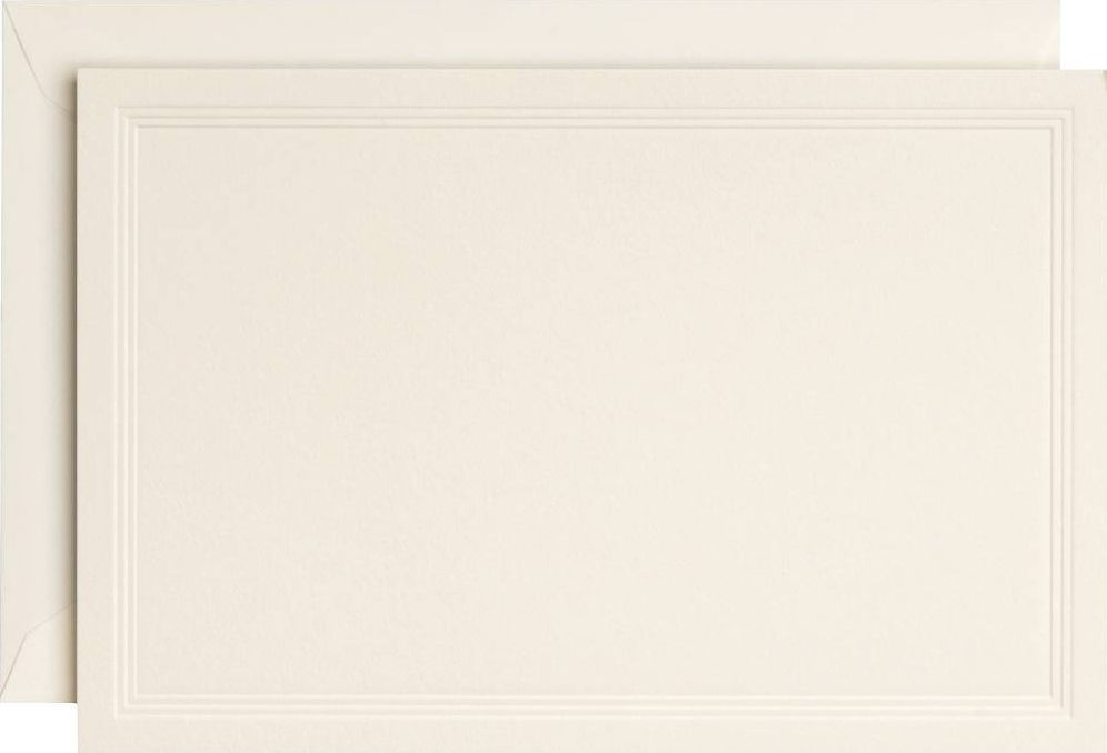 This Crane & Co Triple Debossed Note Set is classic and elegant. Three layers of embossing form a delicate border on the 100% cotton ecru paper, paired with matching envelopes. Sophisticated stationery for all types of correspondence. 10 – 4 1/4″ x 6 1/4″ flat notes10 – 4 1/2″ x 6 1/2″ ecru envelopes