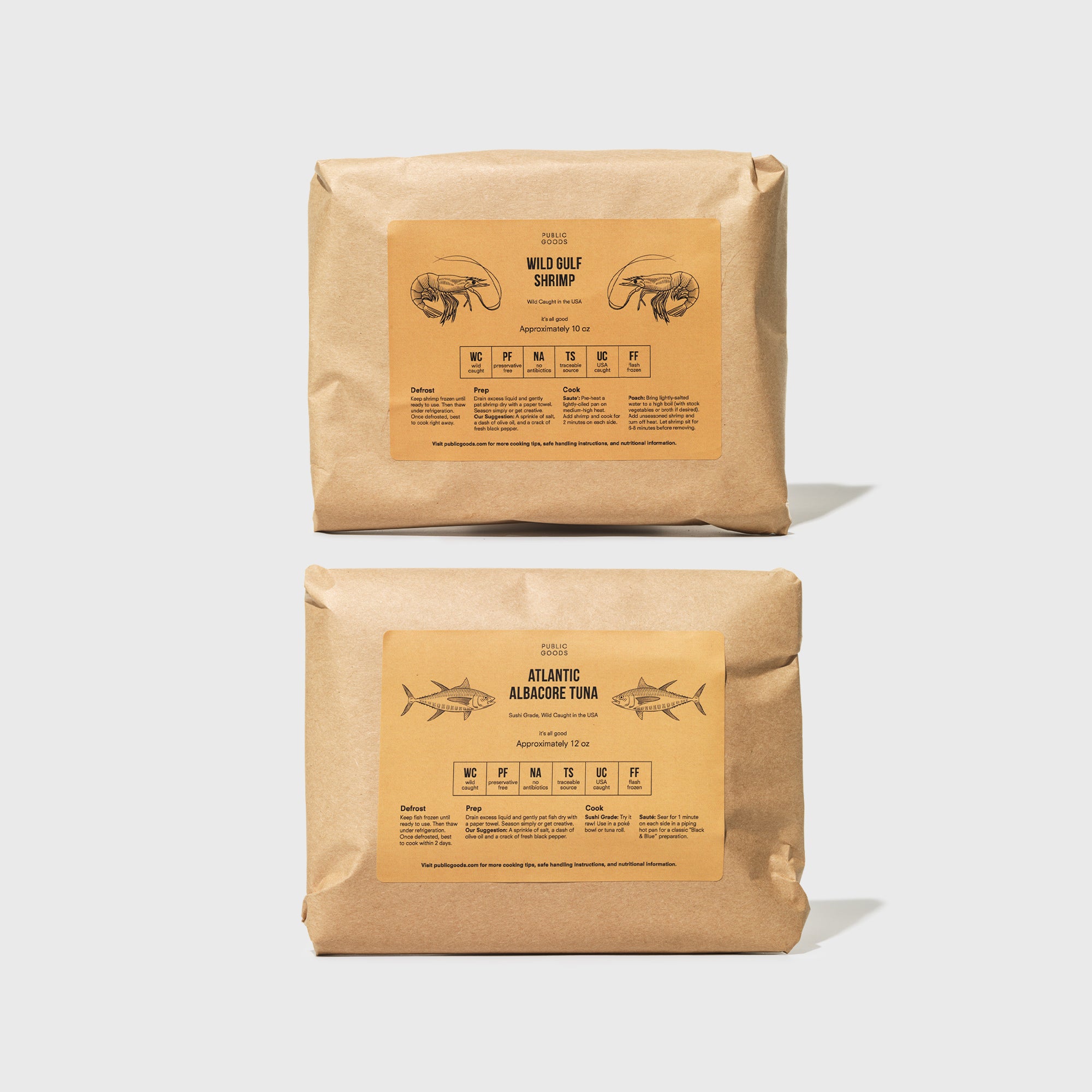 Our Wild Gulf Shrimp & Atlantic Albacore Tuna pack puts two crowd pleasing favorites in one place. Our Wild Gulf Shrimp are responsibly harvested according to US regulations and notably more tender with a mild, sweet finish. Albacore Tuna is known for its smooth, mild flavor compared to other tuna species and the sushi-grade quality gives it a melt-in-your-mouth texture. The freshness, flavor and health benefits are enhanced by our sustainable, US wild-catching methods.