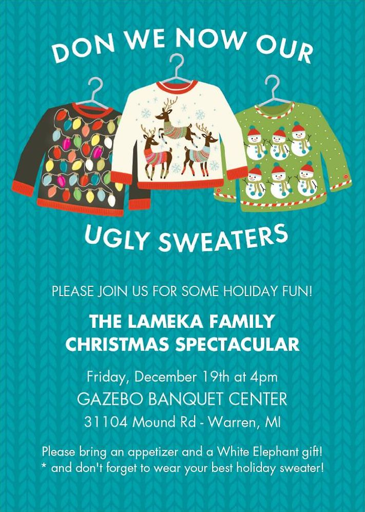 It’s that time of year! Invite friends and family over to show off their ugliest holiday sweaters. Argyle and embroidery are sure to abound. Printed on Mohawk ultra white 120 lb. card stock that is soft to the touch and matches our superfine white envelopes. Paper is FSC certified and made using wind power.