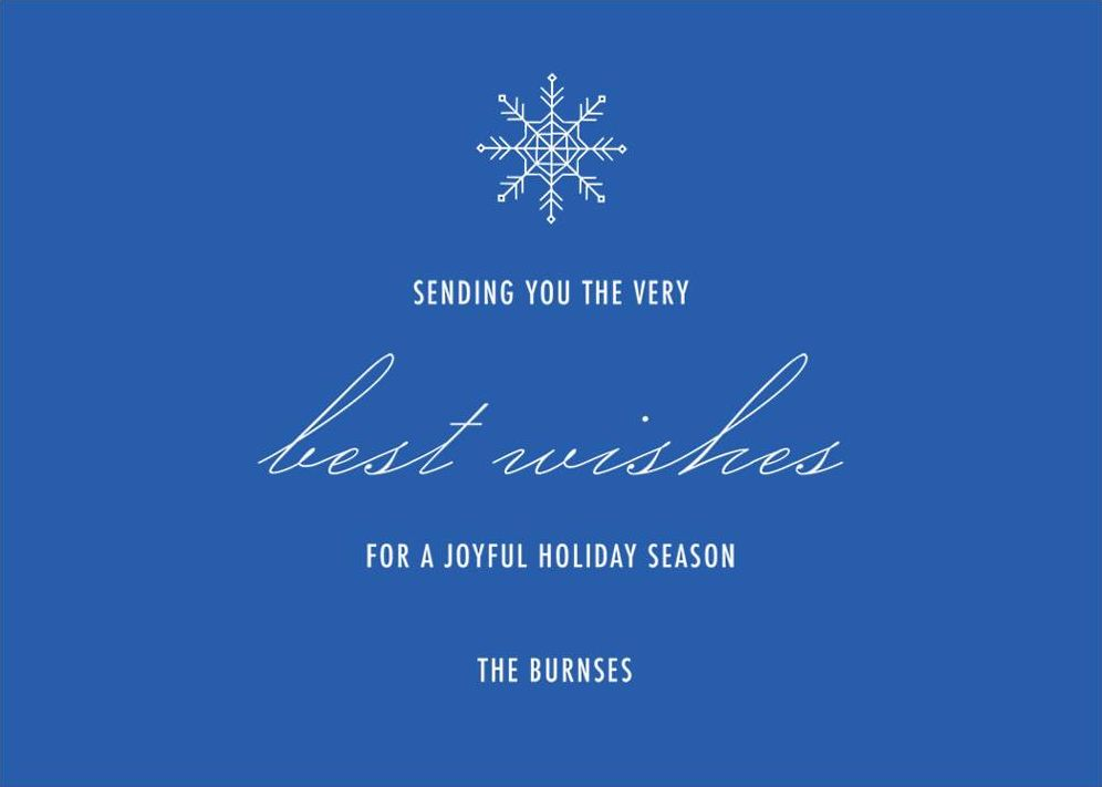 Send a sweet holiday note on a magical blue backdrop. Customize the message to your liking and this holiday card by Paperless Post is ready to make its way to your loved ones. See photo options for the back of this card!