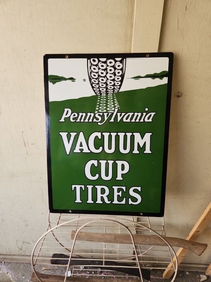 VACUUM TIRES PORCELAIN GAS MOTOR OIL AUTOMOBILE SERVICE STATION SIGN 24×18 Inch
