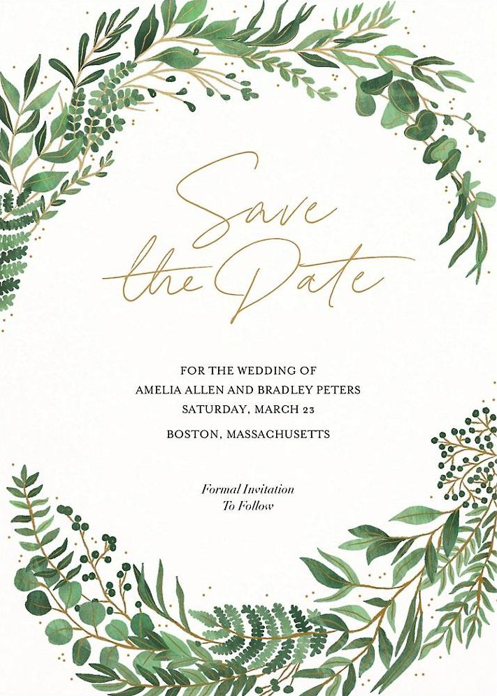 Soft and lush greenery with light pink accents trail along the edges of the Verde suite by Paperless Post. Printed on superfine white paper, which has a smooth finish and is soft to the touch. 130# cover weight paper with 30% post consumer recycled content.