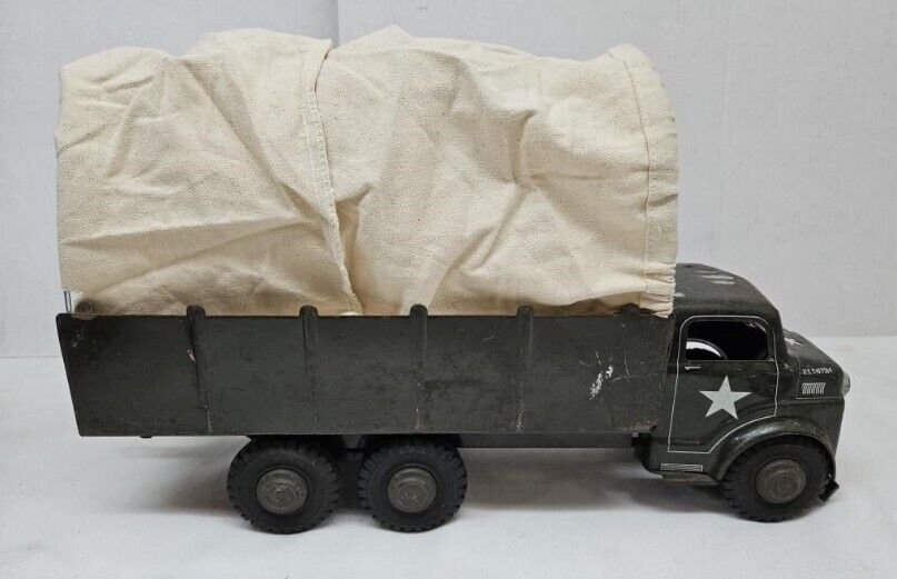 Vintage 1950s Marx Lumar 18.5″ US Army Carrier Transport Truck W/Original Canvas