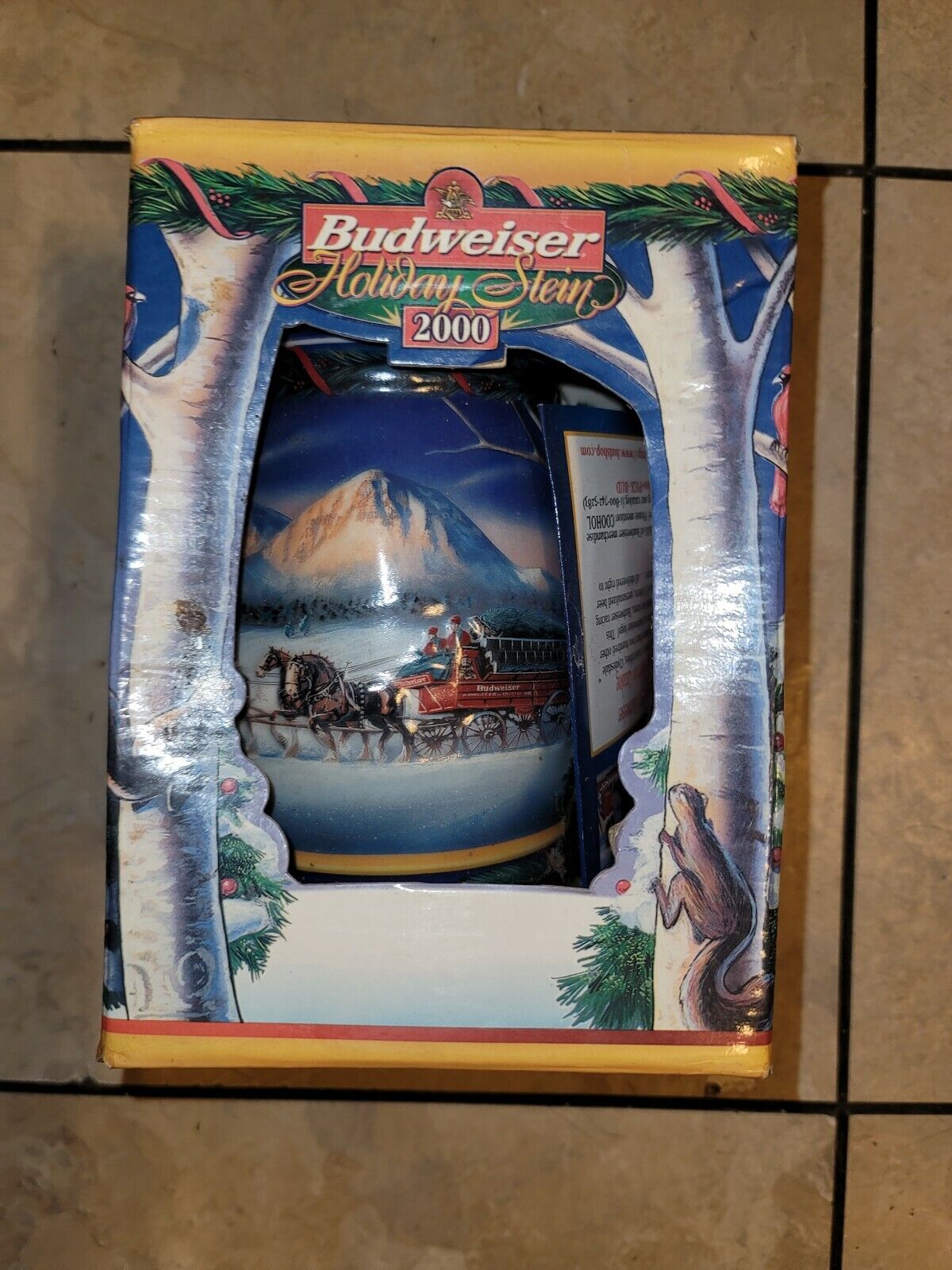 Vintage 2000 Budweiser Stein “Holiday In The Mountains” NEW In Original Box. Condition is “New”. Shipped with USPS Priority Mail. .aucCounter a { text-decoration:none; }.aucCounter span:hover { text-decoration:underline; }.aucHiddenCounter { display:none; }.aucCounterOrangeText { color:#FB6D05; font-family:Arial; Font-size:13px; Font-weight:bold; }.aucCounterBlueText { color:#0068ac; Font-family:Arial; Font-size:11px; } Track Page Views WithAuctiva’s FREE Counter