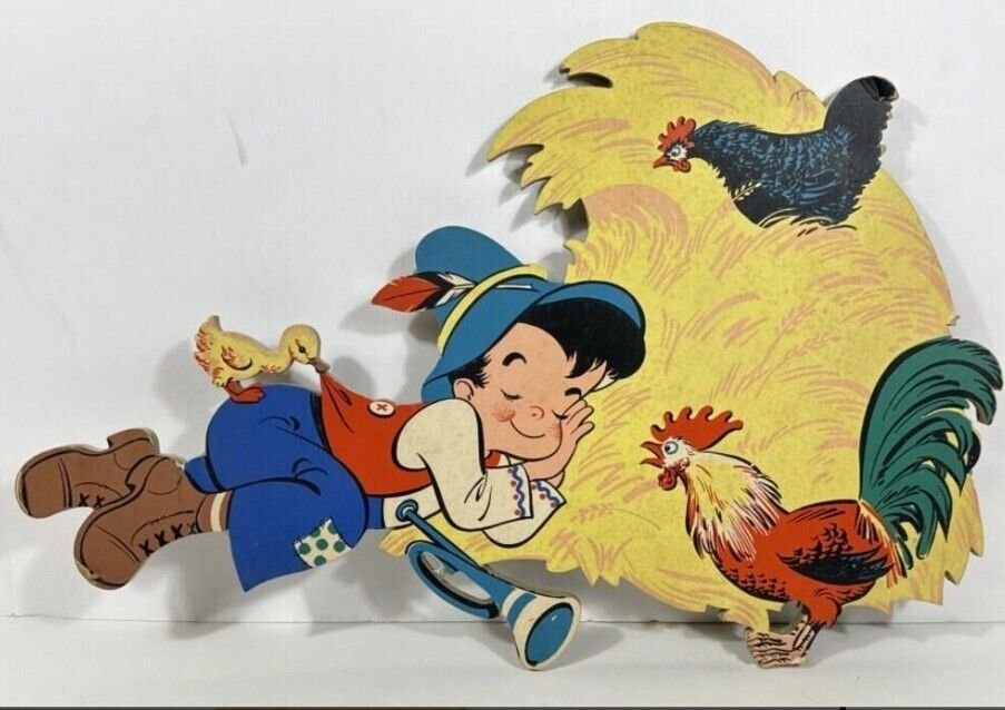 Vintage 50s COWBOY MOTHER GOOSE Child Room Wall Hanging 1pc Dolly Toy Company