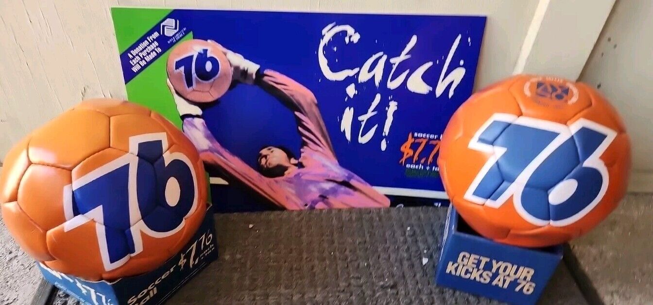 Vintage 76 Gasoline Orange Logo Promotional Sign Soccer Ball Original Display