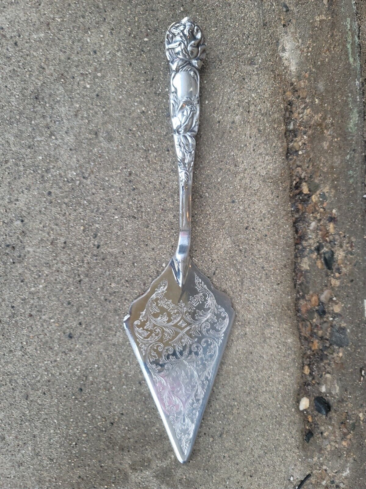 Vintage Art Nouveau Silverplate Pie Cake Server Ornate Etched Italy 12″