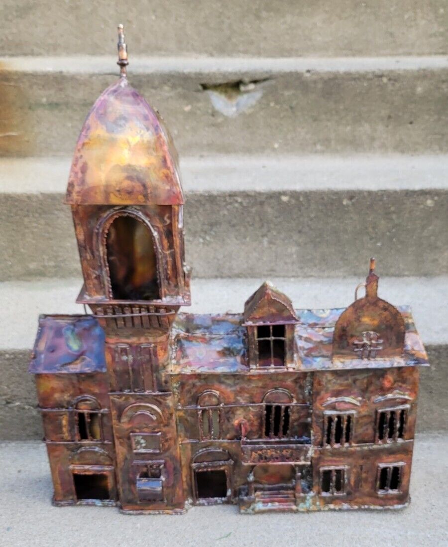 Vintage Copper CITY BUILDING Sculpture Metal Wall Art Hanging Town MCM Magaw Org