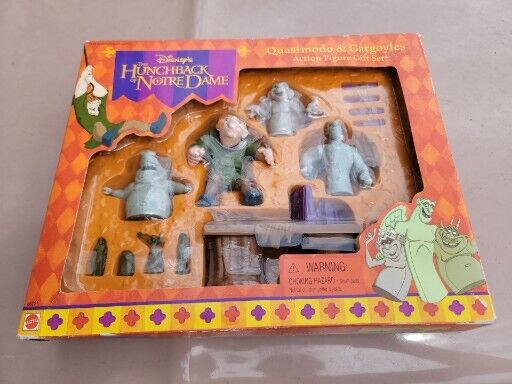 This vintage Disney’s Hunchback of Notre Dame Esmeralda & Phoebus Figure Gift Set is perfect for collectors and fans alike. The set includes an original action figure set featuring Esmeralda and Phoebus, characters from the beloved Disney movie The Hunchback of Notre Dame.