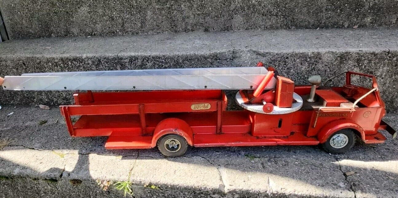 Vintage Doepke Rossmoyne Model Toys Ladder Fire Truck Pressed Steel 1950s