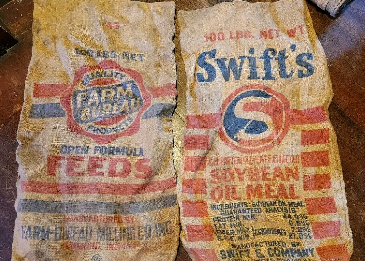 Vintage Farm Swifts Victory Large Burlap Sacks Wayne Seeds Hog