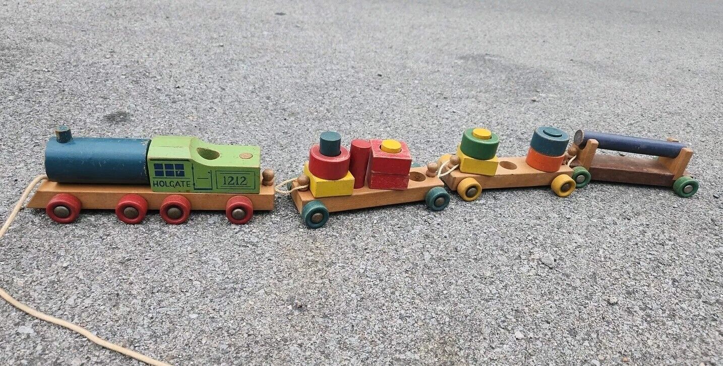 Vintage Holgate Wooden Pull Train #1212 Engine with Three Cars