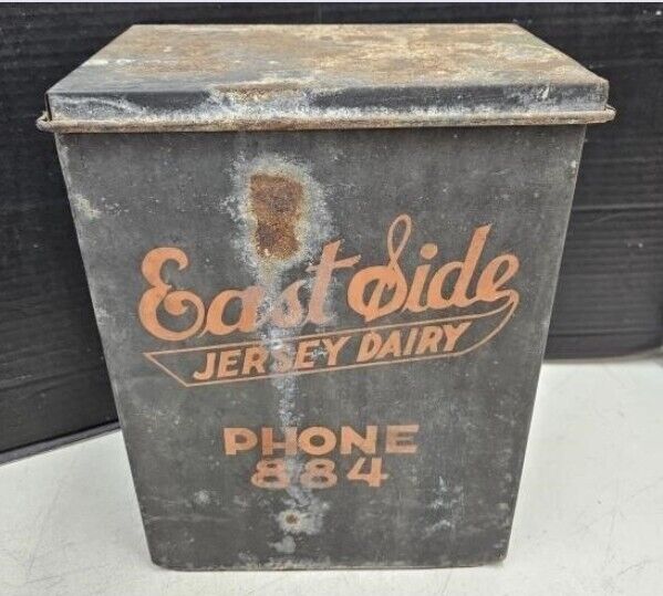 Vintage Milk Box Galvanized Metal Property East Jersey Farm Dairy Anderson In