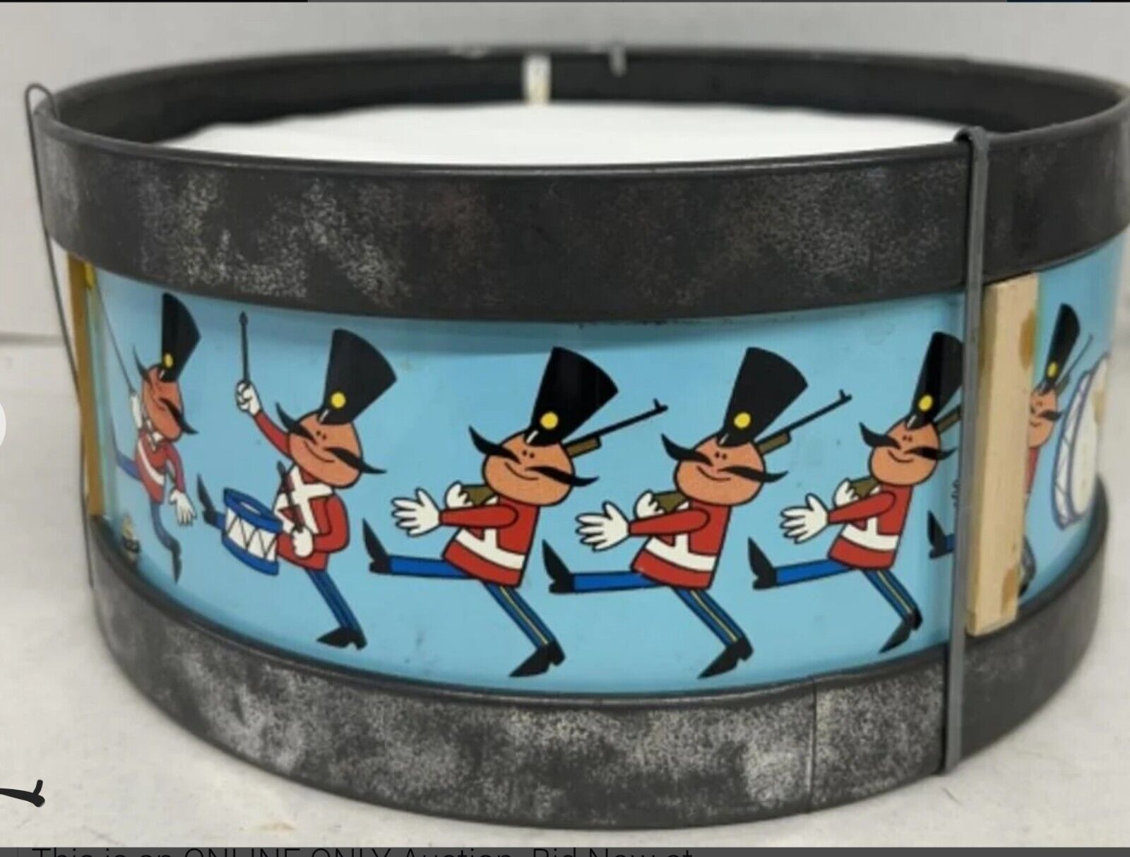 Vintage Ohio Art Metal Toy Kids Drum Circus Blue 6″ Marches