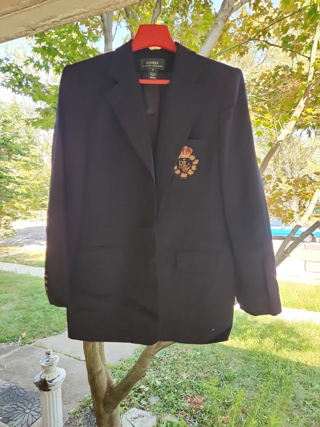Vintage Ralph Lauren Crested Jacket Women Size 14 Navy