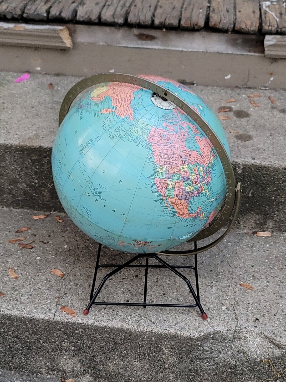 Vintage Replogle Globe Colonial Ocean 12-inch Diameter USA Mcm Deco wire stand