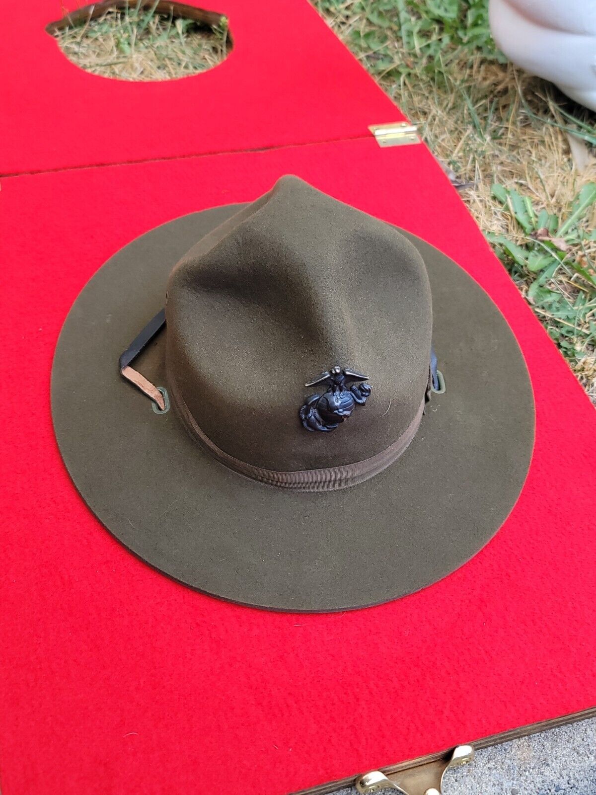 Vintage USMC Marine Corps Campaign Felt Hat Sergeant Wood Presentation Case 6 ¾