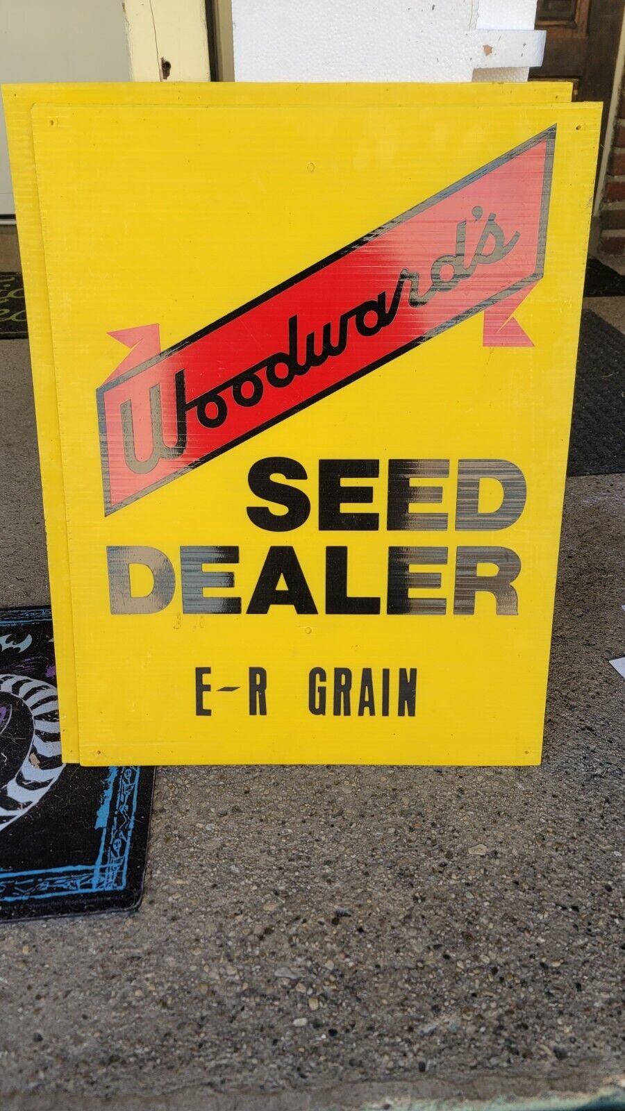 The sign is made by Woodward’s and is a unique piece of advertising history. It has been previously enjoyed and is now ready for a new home. Whether you are a serious collector or simply looking for a unique piece to decorate your space, this Woodward’s Premium Hybrid Corn Seed Dealer Sign is a must-have. corrugated plastic. These two signs will clean up great. You are buying one sign at a time this is not a lot.