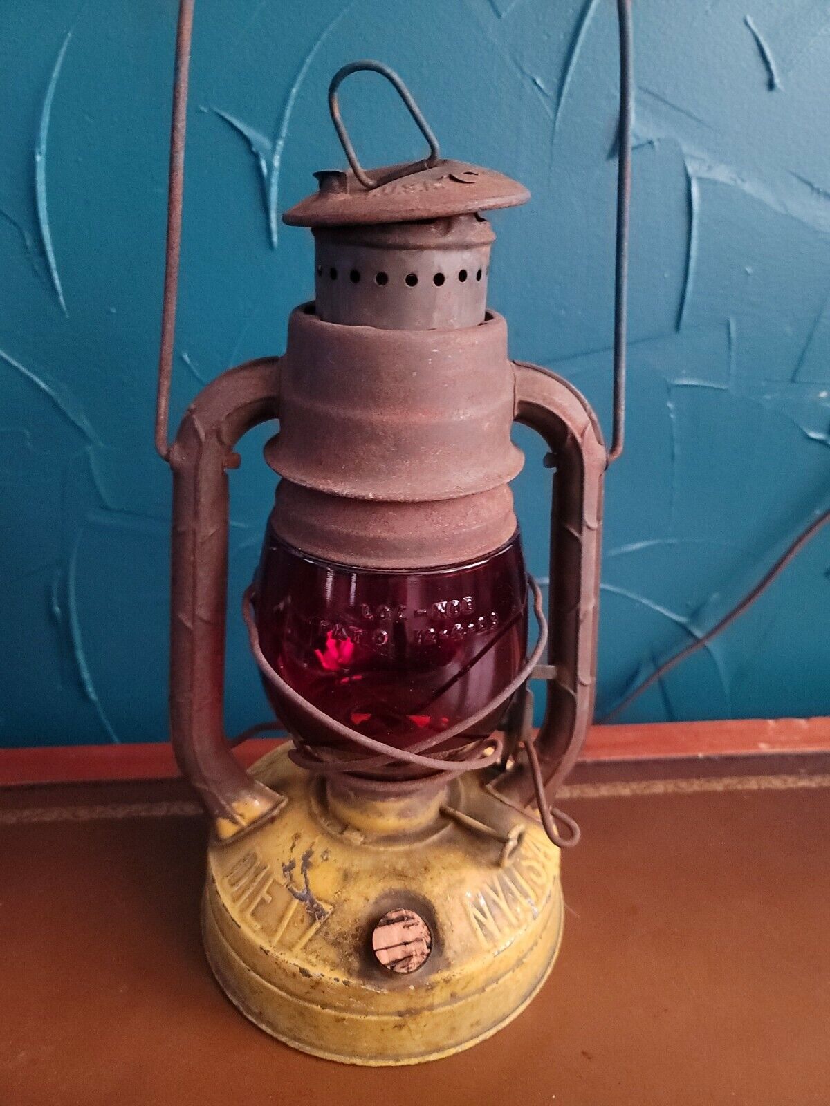 VINTAGE YELLOW DIETZ LITTLE WIZARD RAILROAD TRAFFIC LANTERN DARK RED GLOBE EUC