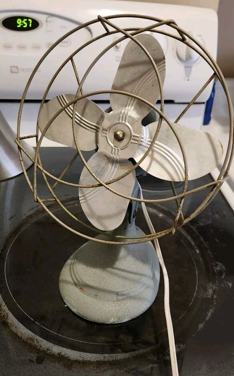 VTG 1930’s Electric Sterling Table Top Art Deco Metal Fan 5197 WORKS