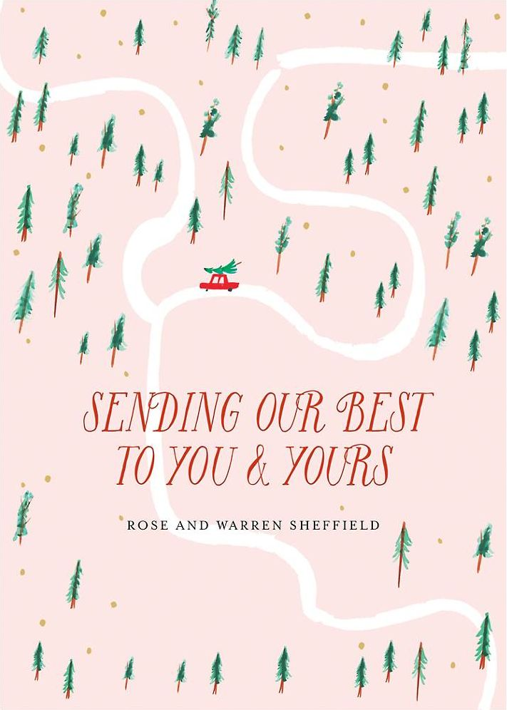 Observe the speed limit—it’s reindeer season! From the designers at Mr. Boddington’s Studio for Paperless Post, a quaint personalizable holiday card. Be sure to check out photo options for the back of this card!