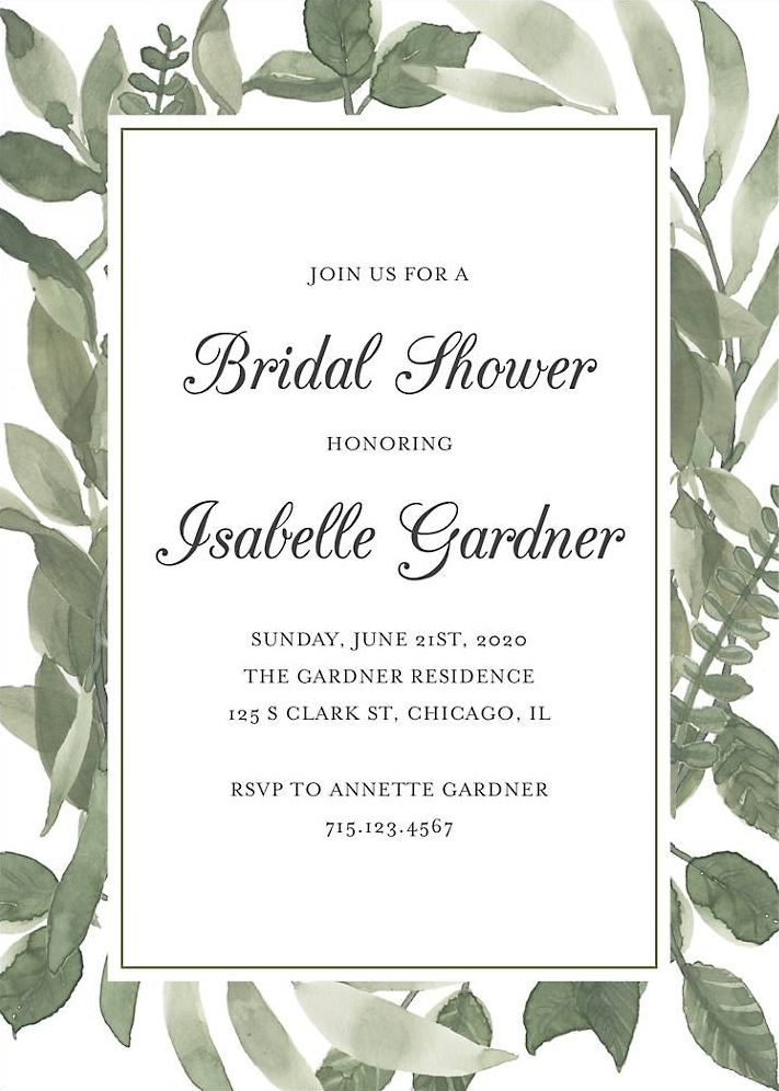 Watercolor Leaves Bridal Shower Invitation