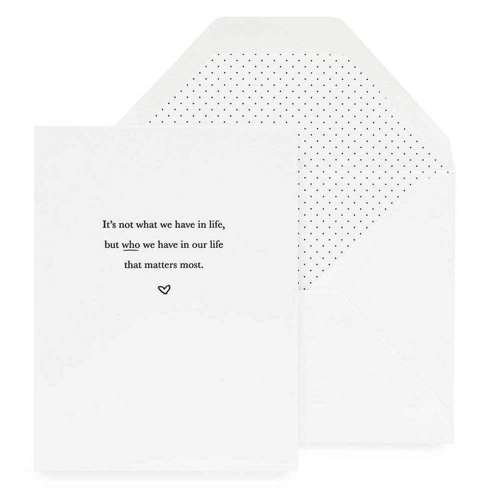 Send your love with this sweet message. Card reads, “It’s what we have in life, but who we have in our life that matters most.” Folded card Blank inside Paired with matching envelope By Sugar Paper