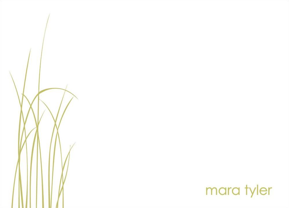 Blades of green grasses provide a fresh detail on this perfectly simple note card. Printed on superfine white paper, which has a smooth finish and is soft to the touch. 130# cover weight paper with 30% post consumer recycled content.