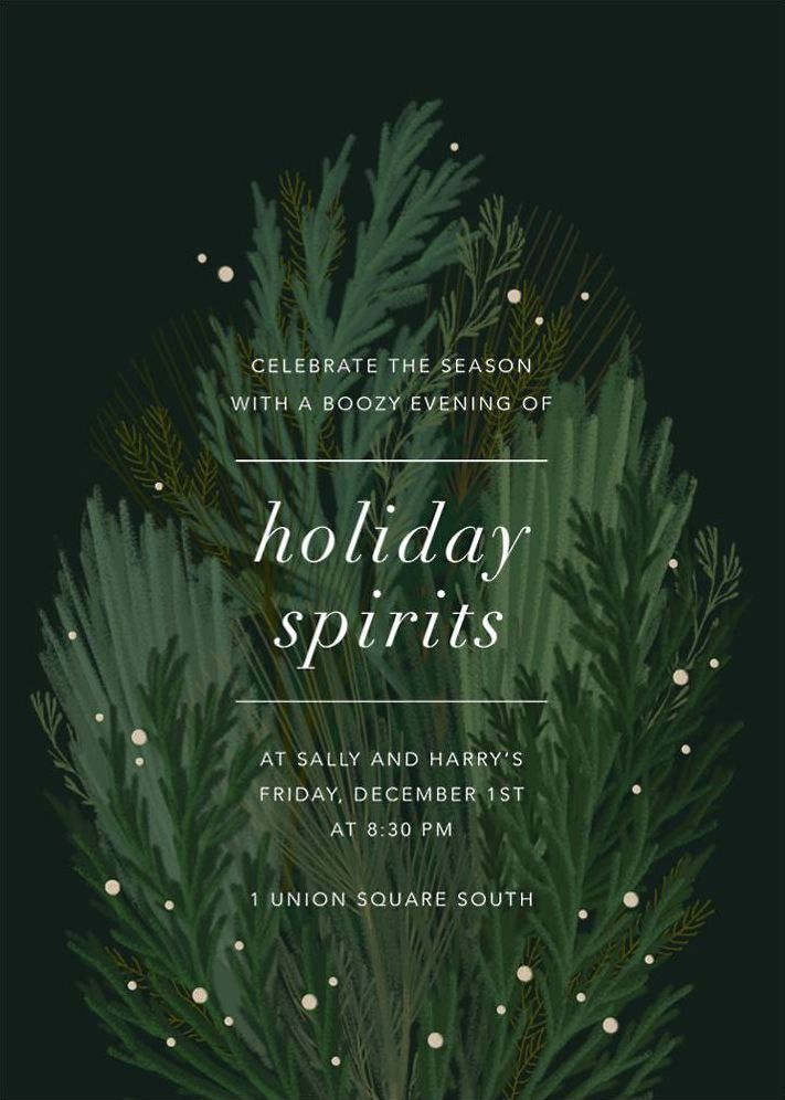 Customize this leafy bouquet holiday card by Paperless Post , and invite friends over for a night of festive fun. This card features a luscious design of evergreens clustered together in a beautiful bouquet.