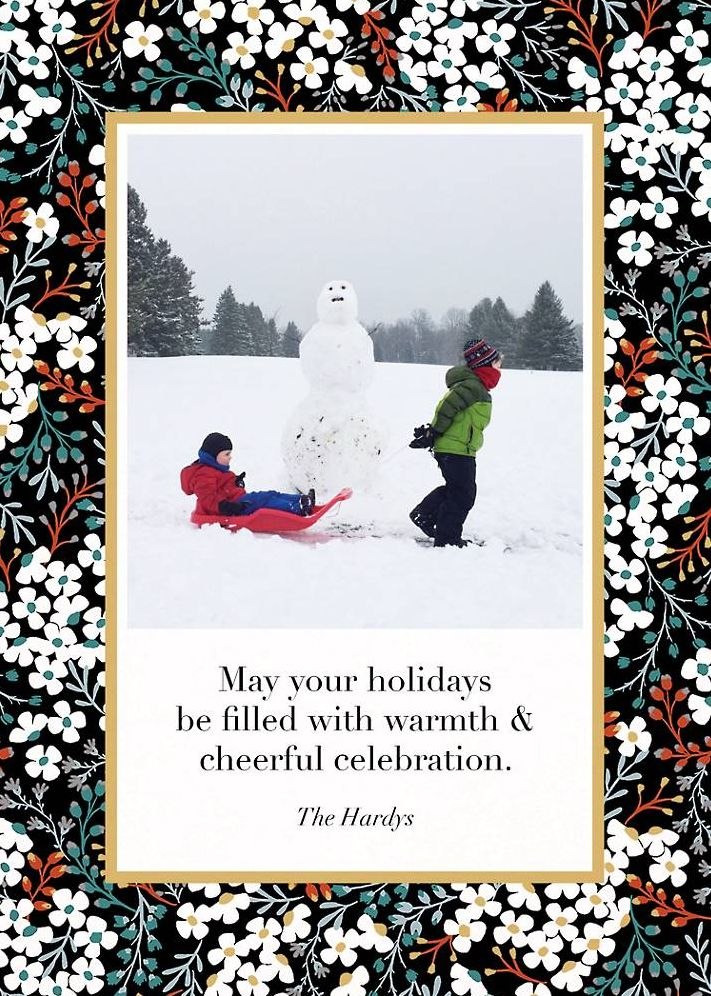 Let those you love know that you’re thinking of them with this personalized holiday photo card from kate spade new york by Paperless Post. This card pictures a lovely winter floral border and can be further customized with a message from you and your family. Printed on Mohawk ultra white 120 lb. card stock that is soft to the touch and matches our superfine white envelopes. Paper is FSC certified and made using wind power.