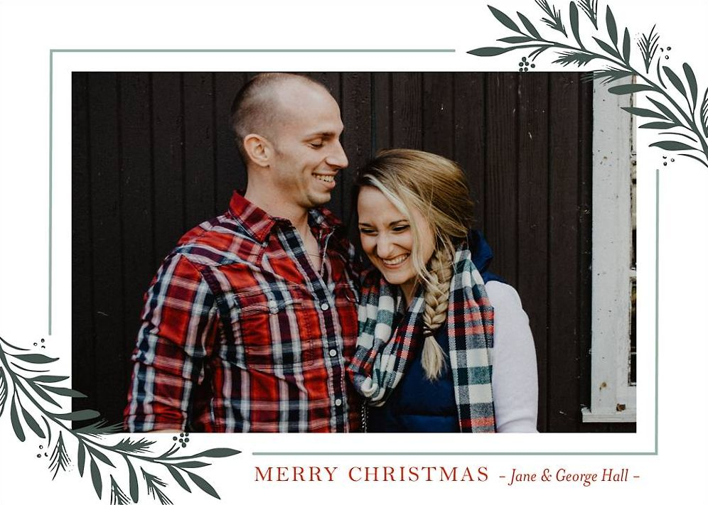 Two cheery boughs of myrtle encircle the borders of your favorite photo on the front of this sophisticated and minimalist holiday photo card, designed for you by Paper Source.