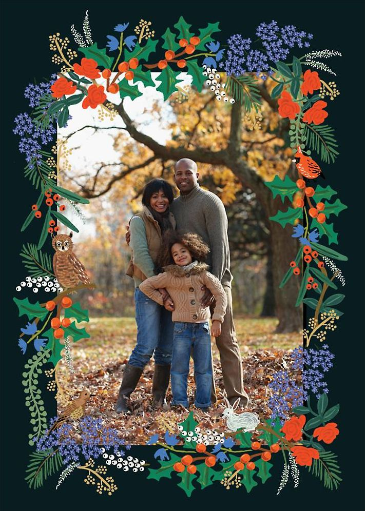 Holiday greenery and florals encircle your favorite photo on the front of this beautiful holiday card, designed by Rifle Paper Co. for Paperless Post.