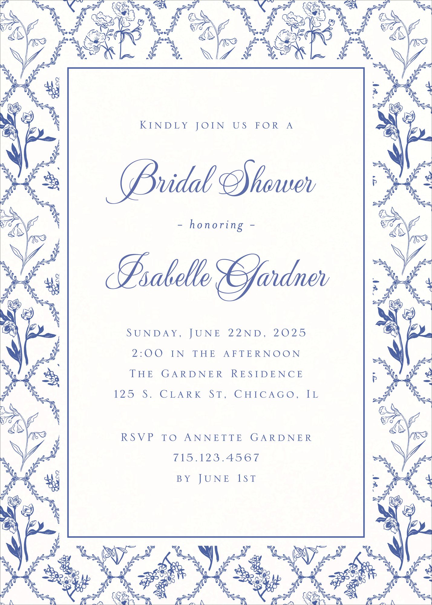 Woodland Toile Bridal Shower Invitation