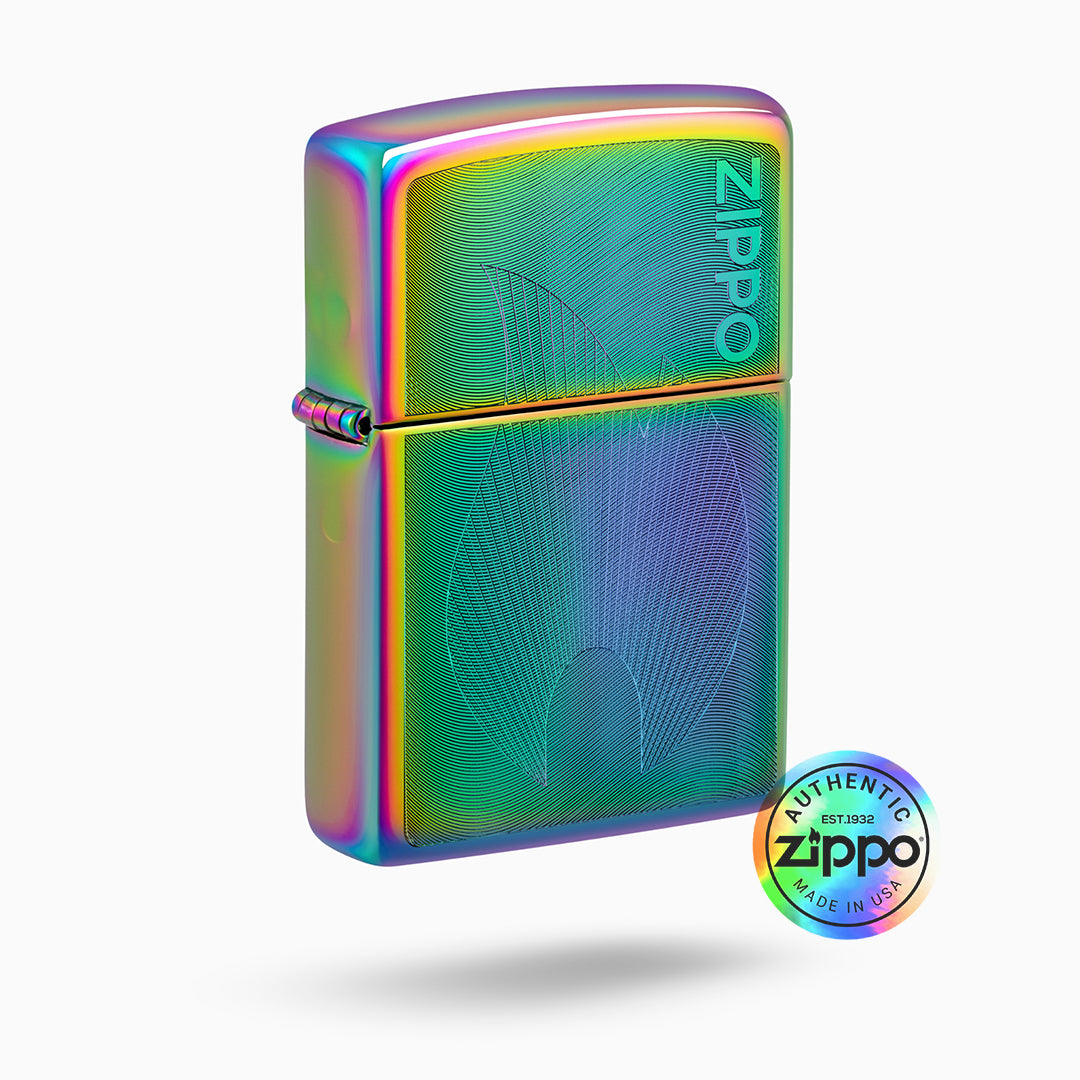 Experience the mesmerizing glow of the Dimensional Flame Design Zippo lighter, featuring a subtle and stylish etching of the classic logo and flame icon. With its multi-color design, this lighter is sure to add an eye-catching touch to any collection. Perfect for those who appreciate both style and functionality.